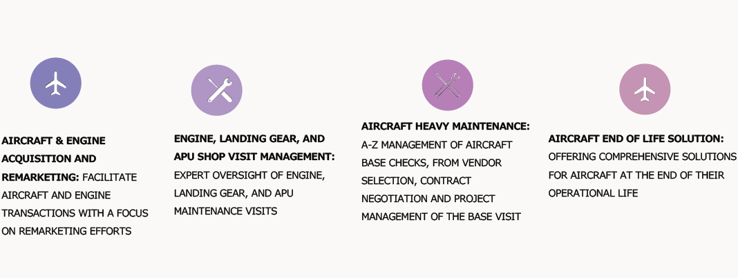 We manage and sell whole aircraft, part consignment and manage customer assets for lease. We provide a comprehensive suite of services that covers every aspect of aircraft asset management, including: